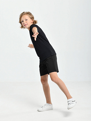 Шорты без карманов. Пояс притачной, со вставленной внутрь резинкой. В пояс вставлен шнур.