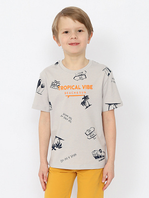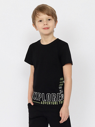 майка с широким плечом из гладкокрашенного кулирного полотна. горловина и проймы обработаны притачными бейками из рибаны с эластаном. перед декорирован принтом.
