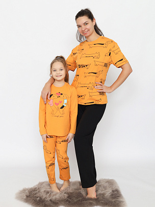 Пижама для девочки (футболка, брюки) охра