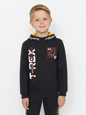 Водолазка для мальчика с воротником-стойкой, с отворотом. Рукава длинные с манжетами из основного полотна по низу. Перед водолазки декорирован принтом "Проследи свой путь".
