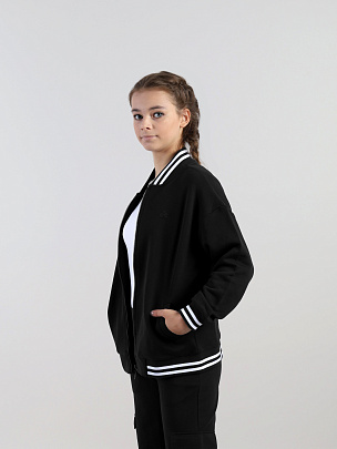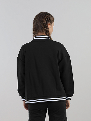 Школьный трендовый бомбер в университетском стиле, выполненный из футера. Актуальный крой оверсайз с заниженной линией плеча позволяет сочетать модель с любым комплектом, сохраняя при этом комфорт и свободу движения. Воротник, манжеты и пояс в рубчик. Боковые карманы добавляют практичности и удобства в использовании, позволяя хранить необходимые мелочи всегда под рукой. Фронтальная застежка на молнию. Вышивка спереди. Контрастные полоски на воротнике, манжетах и поясе в стиле преппи. Благодар...