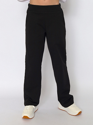 Брюки прямого силуэта с карманами подойдут в качестве школьной формы, а также повседневной одежды. Изготовлены из футера. Прямой силуэт и пояс на резинке не стесняют движений. Брюки имеют карманы достаточной глубины.