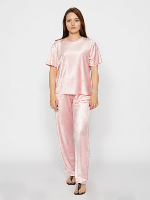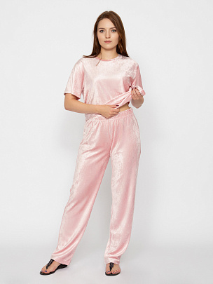 Идеальный вариант для отдыха, поездок и путешествий, для дома, улицы и дачи. Вы всегда будете выглядеть стильно и привлекательно! Костюм изготовлен из высококачественного бамбукового велюра. Футболка свободного силуэта с коротким рукавом, брюки прямые на мягкой резинке. Ткань переливается и меняет оттенок в зависимости от освещения.